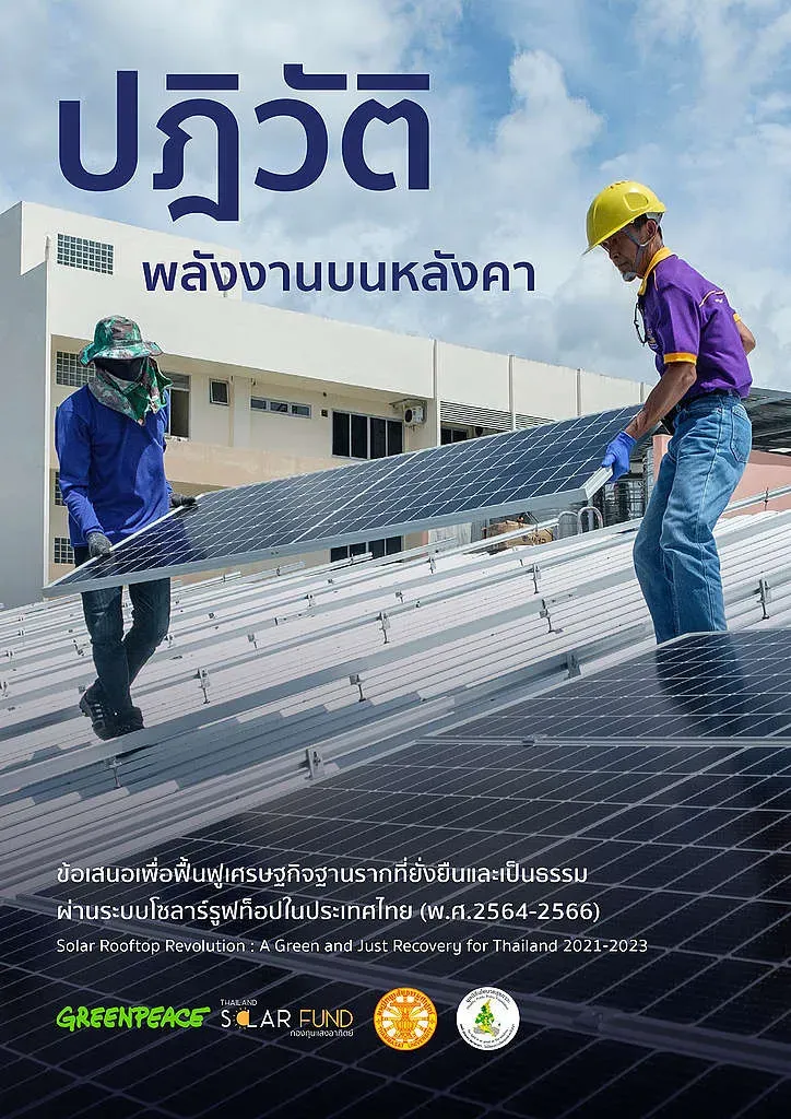 งานศึกษาเรื่อง “ปฎิวัติพลังงานบนหลังคา ข้อเสนอเพื่อฟื้นฟูเศรษฐกิจฐานรากที่ยั่งยืนและเป็นธรรมผ่านระบบโซลาร์รูฟท็อปในประเทศไทย (พ.ศ.2564-2566)” โดยกองทุนแสงอาทิตย์และเครือข่าย
